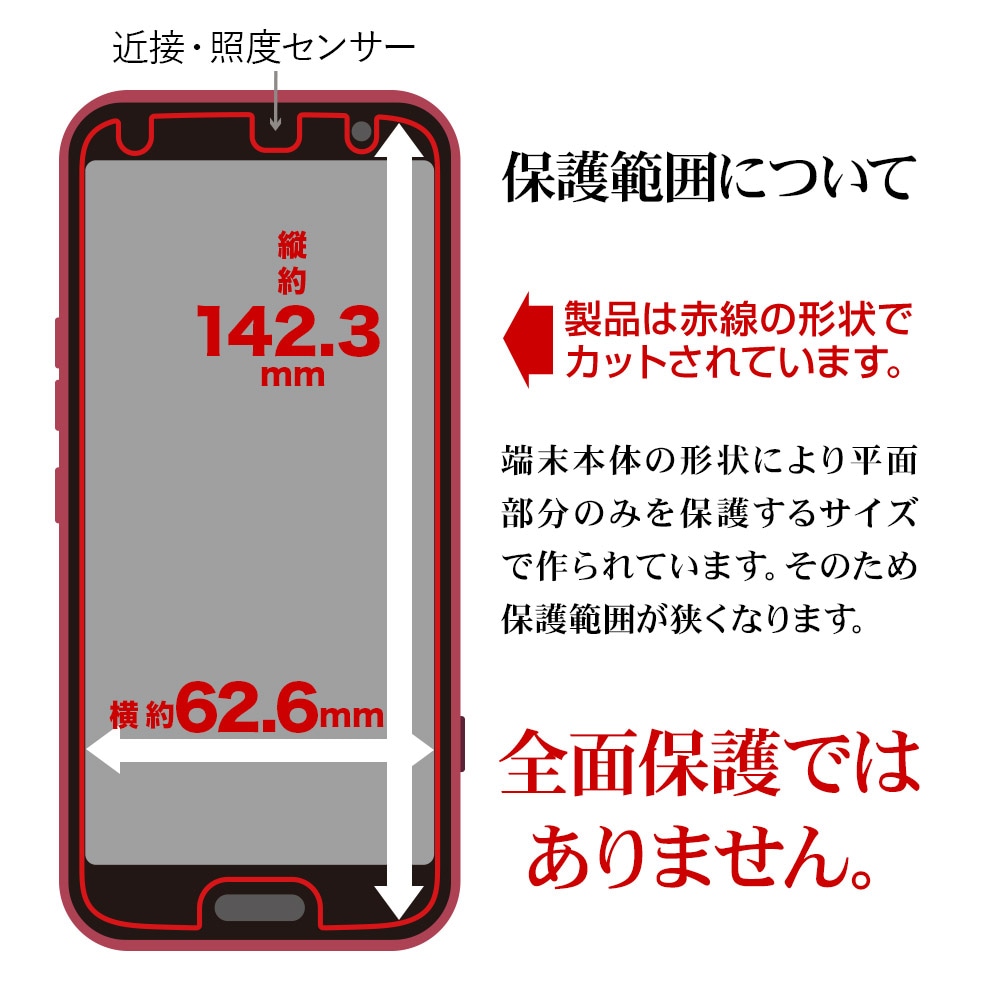 本製品の形状は、端末本体の平面部分のみを保護するサイズで作られています。 また機器本体の構造上、外周に若干気泡が入る場合があります。 こちらの仕様をご理解いただいた上でご購入いただきますようお願いいたします。