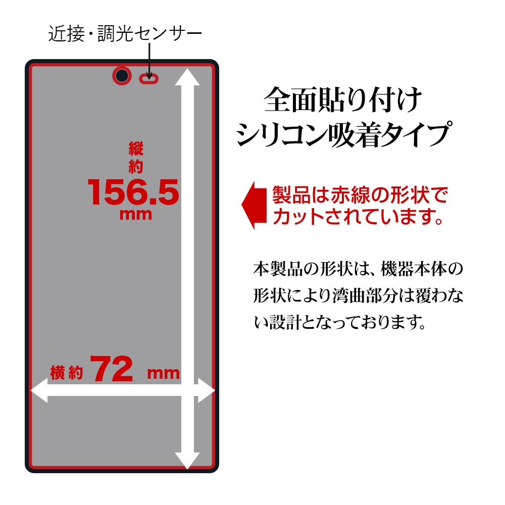 本製品の形状は、機器本体の形状により湾曲部分は覆わない設計となっております。